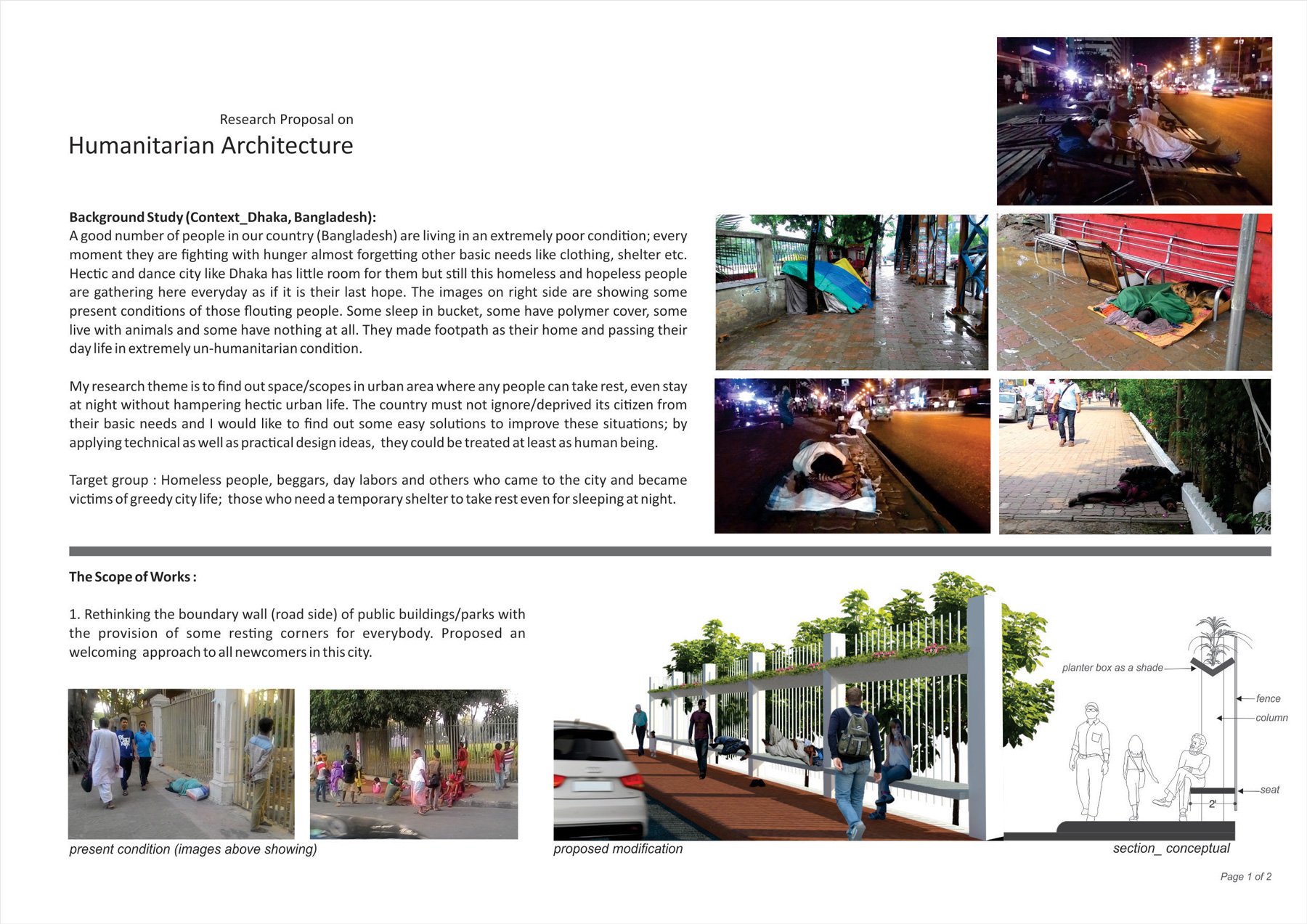 Proposed research shall be related to the general topic of humanitarian architecture. The research shall be originated from the indigenous context and environment of the Young Architect’s country/city of origin, or country/city of current residence. Emphasis shall be placed on adaptation and implementation of research-derived knowledge and techniques to a practical or hypothetical humanitarian architecture project in the Young Architect’s country/city, or respective country zone. It is highly preferable that the project yield tangible outcomes, e.g., in the form of prototype, large-scale model, partial construction.