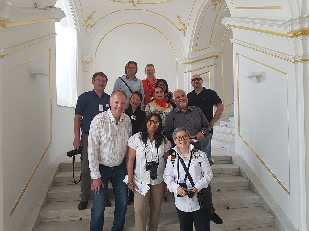 The following day the delegates moved on via Bus to Prague, Czechia but stopped for a day trip in Bratislava, Slovakia where there was a visit to the Bratislava Castle and the old town. The Society of Slovak Architects were the hosts with their President Jurag Herman. The Bratislava Vrad or castle has had a deep history, starting from Roman times , through the middle ages, surviving barely through a fire , the world wars and of course the Communist era. It’s been wonderfully restored now and one can tell from its location atop the hill of its significance over the years as an outpost. The SAS office is ideally located in the old town and the visit there gave the delegates the unique opportunity to explore this scenic European gem.